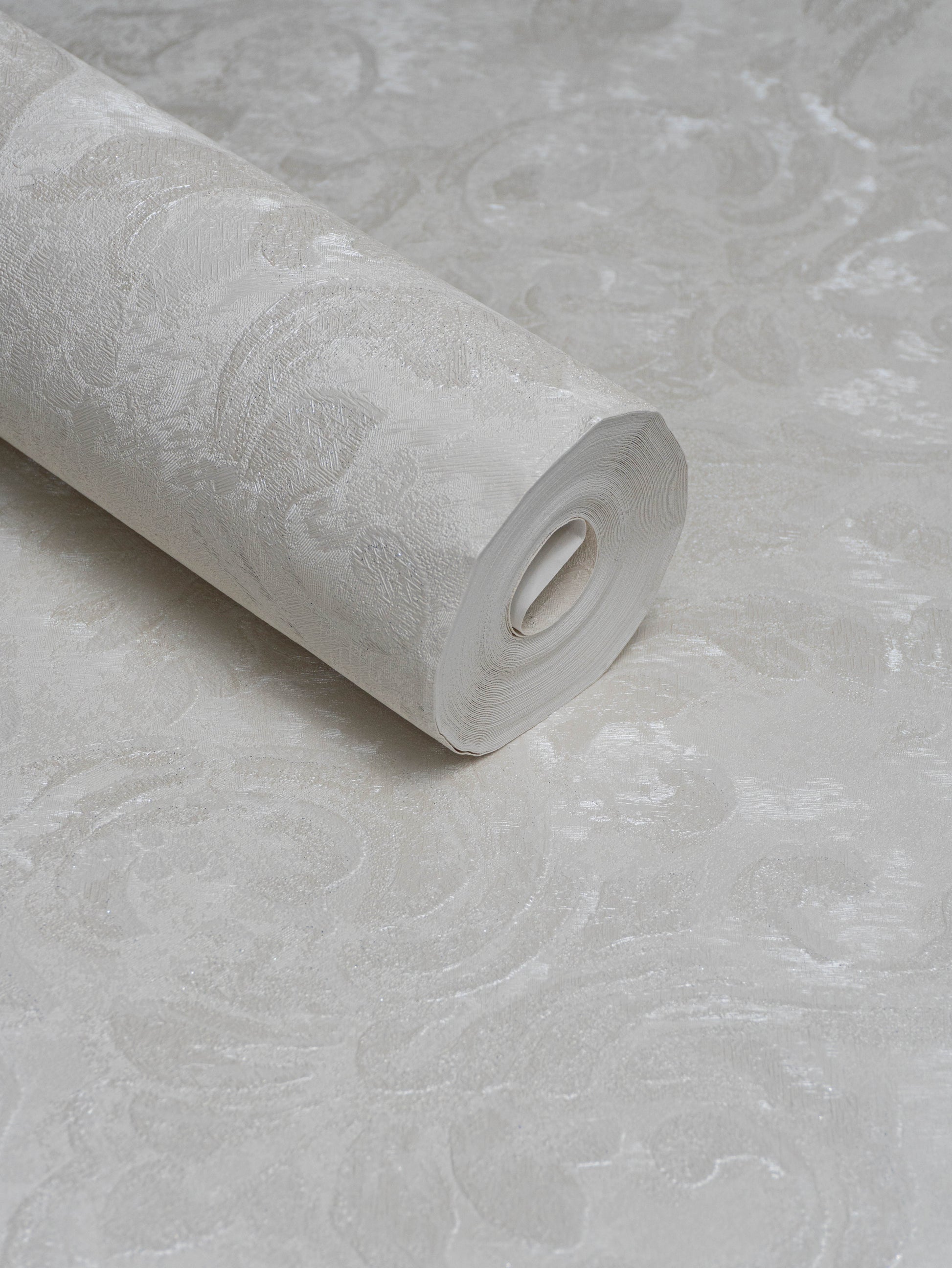 Este papel de colgadura combina elegancia y minimalismo en un diseño de arabescos en tono crema perlado. Su sutil brillo y textura en relieve lo hacen ideal para aportar sofisticación y luminosidad sin recargar el ambiente. Perfecto para salones, alcobas o espacios donde el buen gusto y la calidez se encuentren.
