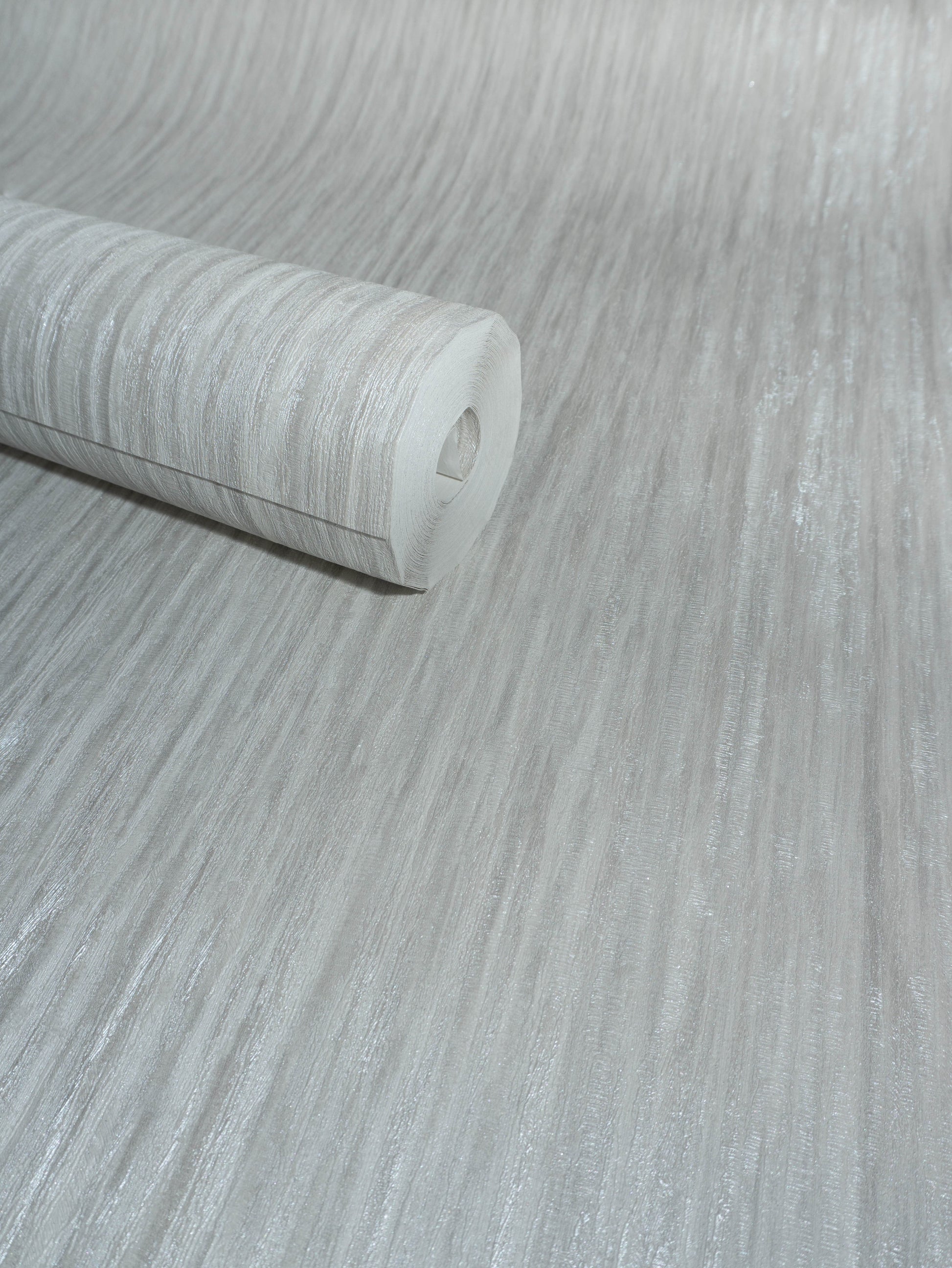 Un diseño de textura lineal en tonos gris claro con sutiles reflejos nacarados. Su apariencia orgánica y fluida evoca serenidad y modernidad, ideal para espacios que buscan un toque elegante sin sobrecargar el ambiente.